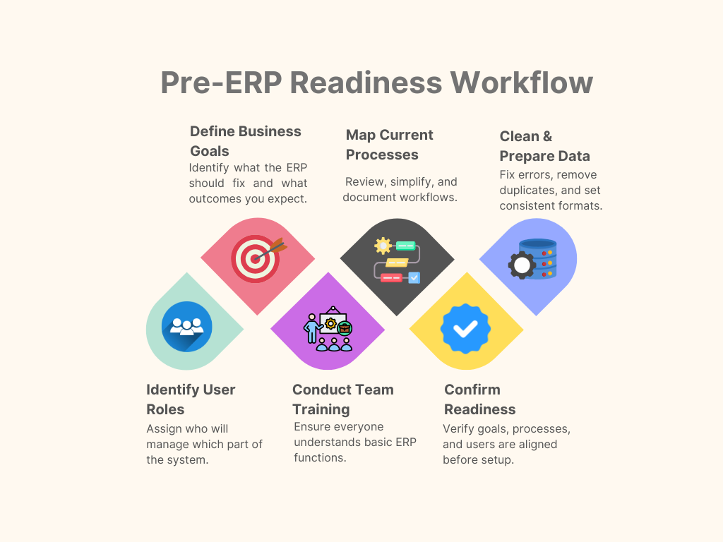 | Weak Process Understanding | Inconsistent workflows, inaccurate reports | Map and standardize workflows before ERP |