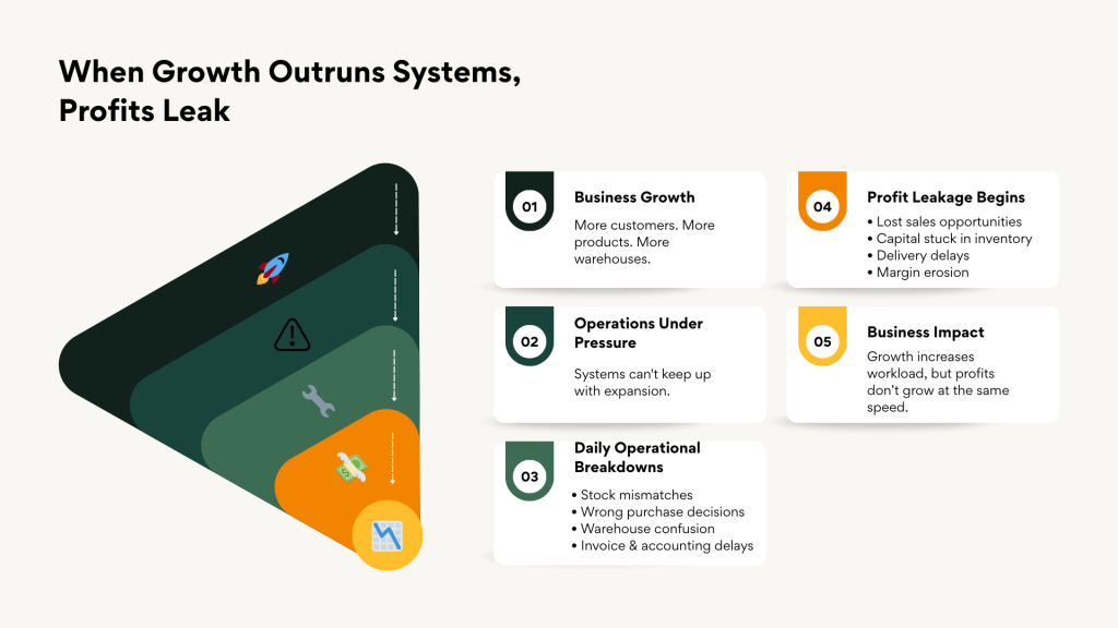 Many trading and distribution SMEs focus on increasing sales but overlook how much profit quietly leaks due to operational inefficiencies. Small gaps in inventory control, purchasing, finance, and warehouse coordination compound over time, turning growth into operational strain.