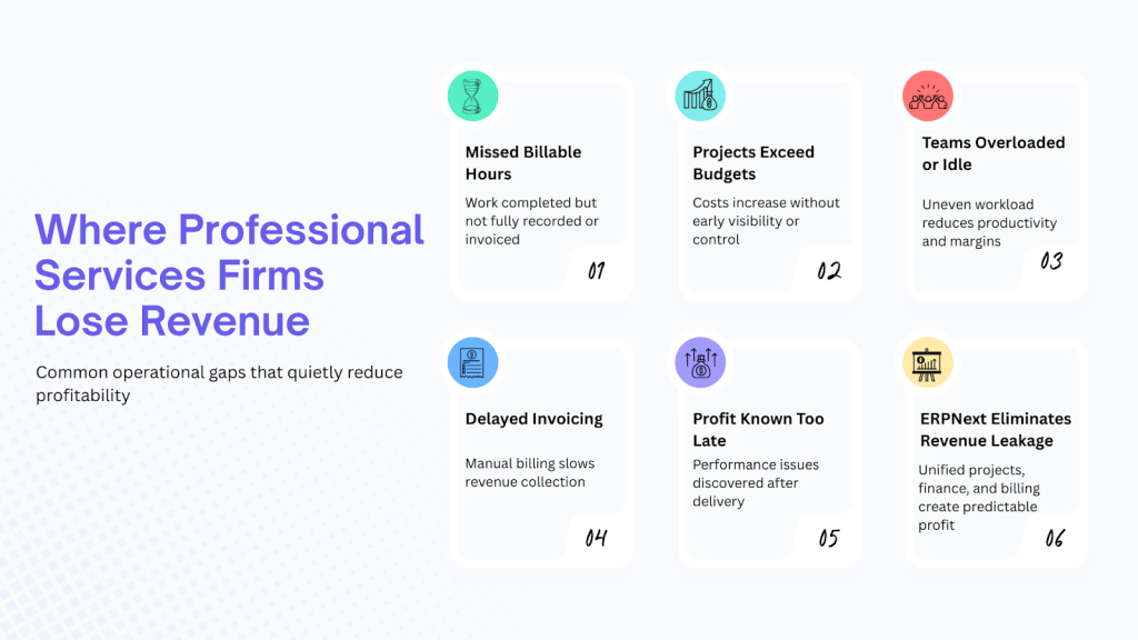 Many professional services firms unknowingly operate with inefficiencies that feel routine but quietly damage profitability. These issues rarely appear as major failures. Instead, they accumulate over time, slowly eroding margins and operational control.